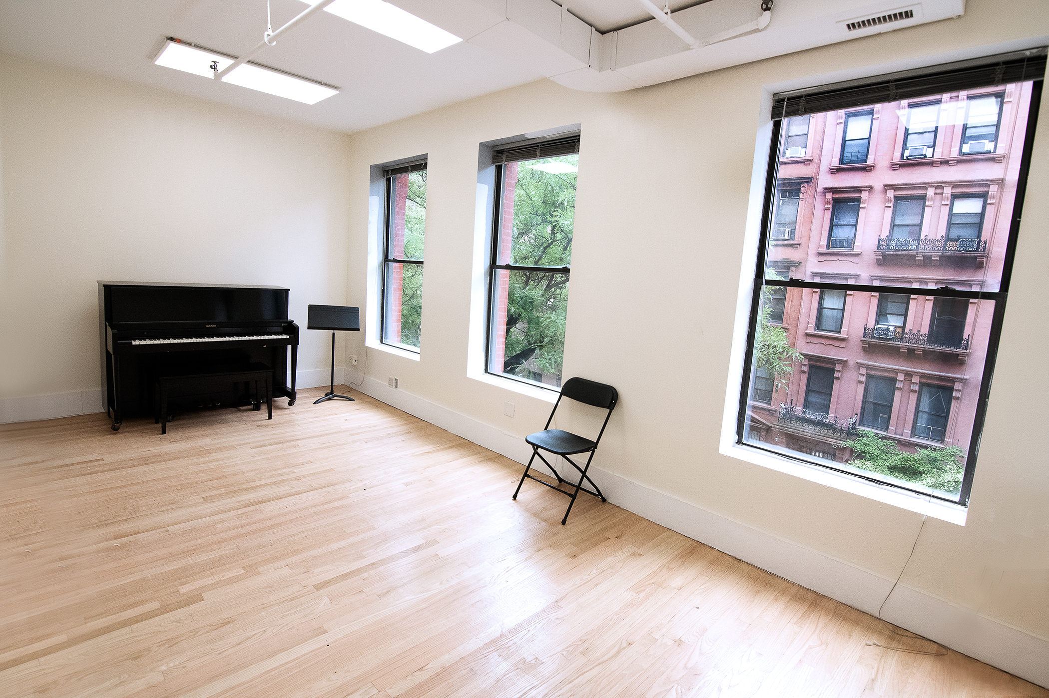 Private or group rehearsals for music, theater, and dance. All studios include seating, mirrors, and pianos in select rooms.